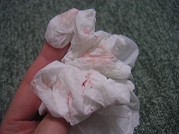 どうやら、爪で目頭を引っ掻いて流血したみたい。