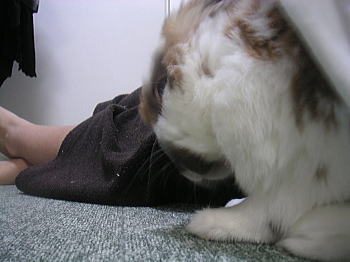 わたしの足のまわりをまわる白茶くんの動画をどぞ(´∀`)ノ