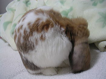 ぶちぶちでっかいロップの白茶くんは推定2003年12月2日生まれ。2014年3月29日永眠10歳3か月17日