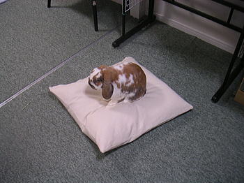 クッションに座る白くん。