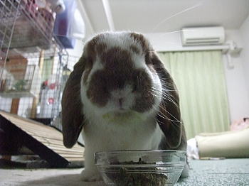 眼振が常に起こっているのを見てしまうと、飼主さんも不安になると思いますが、食欲があるようなので、うさぎ自身はあまり気にしていないと思います。」