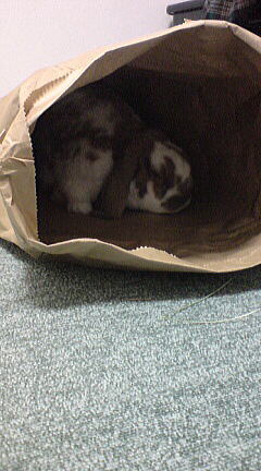 米袋は、こんな感じで白くんの遊び場に変身。