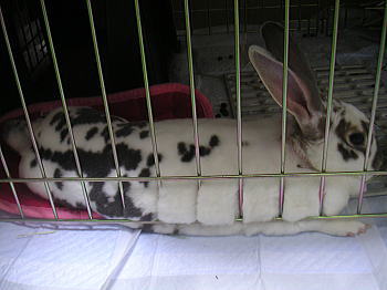 落ち着いてきて、簡易ケージ(サークル)の中でも寝そべっている姿をみるようになりました。