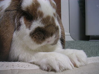 ぶちぶちでっかいロップの白茶くんは推定2003年12月2日生まれ。2014年3月29日永眠10歳3か月17日