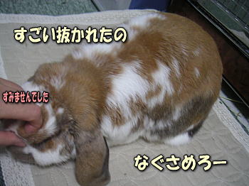 スリッカーブラシは諦めて、両手でモミモミしながら、抜き抜きしました。