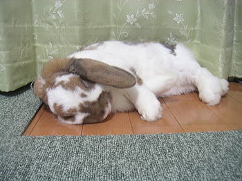 ぶちぶちでっかいロップの白茶くんは推定2003年12月2日生まれ。2014年3月29日永眠10歳3か月17日