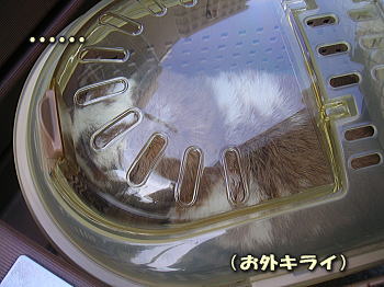 白は基本的にお外がキライなので、キャリーのなかで鬱っとしてます。