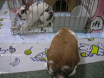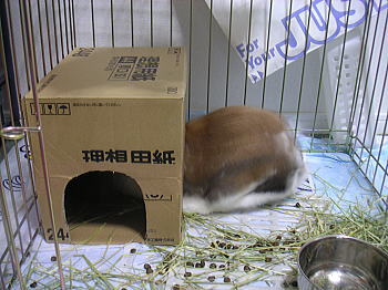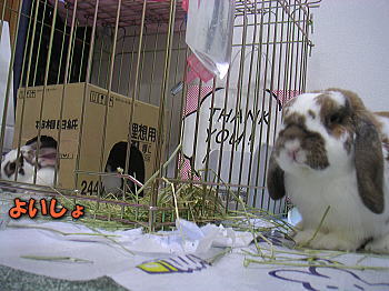 白ケージにも同じ牧草がたっぷり入っているんですよ。