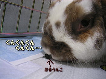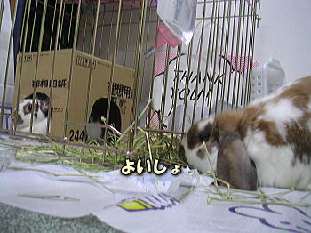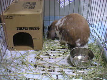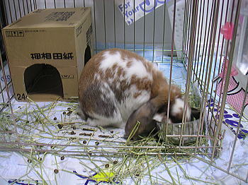 はるたんちの牧草を食べる白くん!
