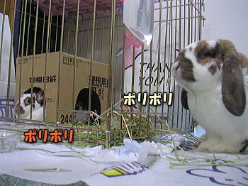 一緒に牧草ポリポリしてくれました。