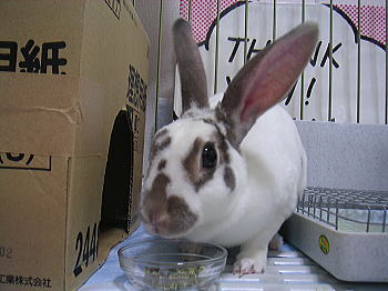 ぶちぶちでっかいロップの白茶くんは推定2003年12月2日生まれ。2014年3月29日永眠10歳3か月17日