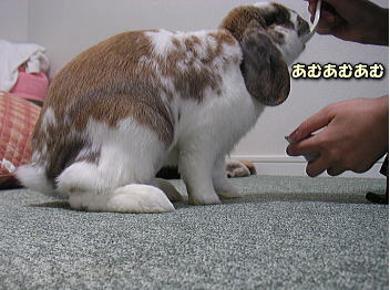 その勢いで、ミカン汁が白の鼻に思い切りついてしまいました。