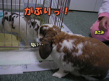 はるたんにいじめられて、あさみさんのところへ逃げ帰りました。
