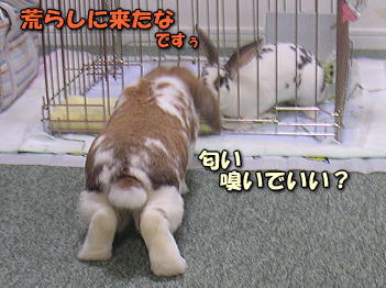 白はビクビクしながらも様子をうかがっては近づいて、はるたんに威嚇されて逃げて、でも懲りずにまた行って威嚇されて・・・の繰り返し。