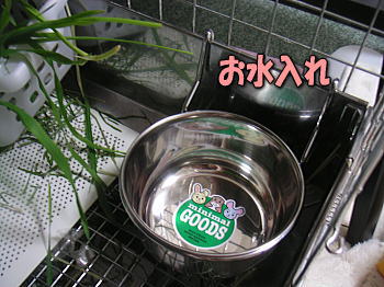 固定式のお水入れ(本来はフード入れ)です。マルカン製品ですよん。