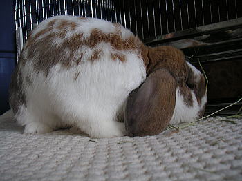 白が牧草食べながらおちっこジョーして、もちろんそこはおトイレのうえではなくプラマットのうえで。