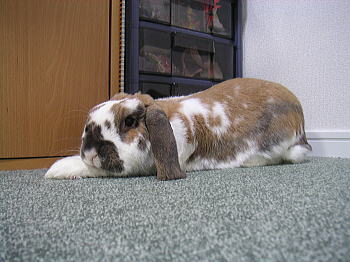 ぶちぶちでっかいロップの白茶くんは推定2003年12月2日生まれ。2014年3月29日永眠10歳3か月17日