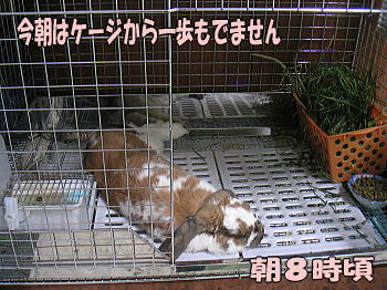 7時・・・8時と時間が過ぎても、白くんはケージから一歩もでません。
