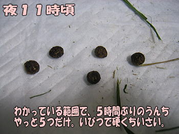 日中のうんこは60粒くらい。あずきみたいなチビうんこ混じり。