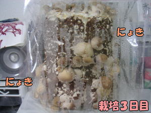 こういうものが入っていたんだけど、開けたら既にしいたけちゃんがいっぱい芽吹いていたんですよ。