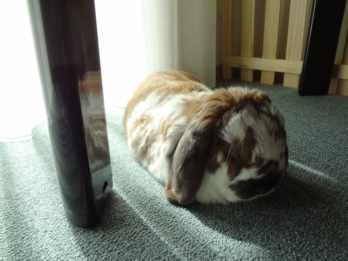 カラーはずして、白くん兎生4回目くらいのお風呂場へGO!