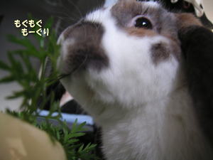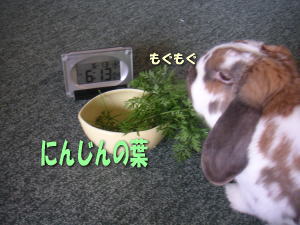 間引いた人参の葉っぱを白くんのお夕食にあげました。