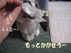 手にしているのは、白くんのおちっこ汚れをふきとったティッシュです。