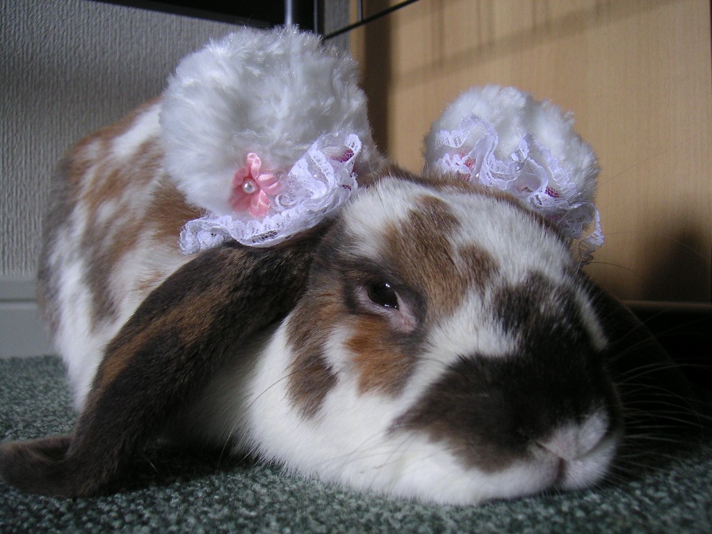 ぶちぶちでっかいロップの白茶くんは推定2003年12月2日生まれ。2014年3月29日永眠10歳3か月17日