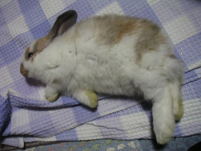 ぶちぶちでっかいロップの白茶くんは推定2003年12月2日生まれ。2014年3月29日永眠10歳3か月17日
