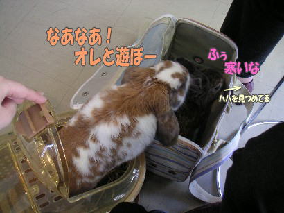 白くんは写真のとおり興味しんしんで、キャリーから出してあわせるたび、身を乗り出して熱い視線を送っていました。