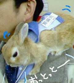 入り口付近で、以前も居た肩乗りうさぎさんを発見!