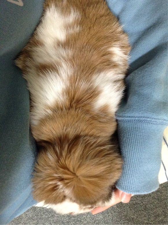 この写真撮るために、患部をグルーミングスプレーで濡らして毛をかき分けて見やすくしてますが、実際は、毛に埋れて全然見えません。