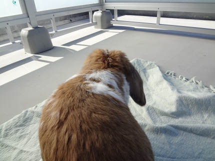 広くなった新居のベランダに白くんを連れ出してみました(・∀・)