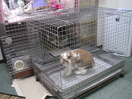 朝5時になって、うさぎのペレット牧草を2~3本口にしていたのを見て安心して自分爆睡。