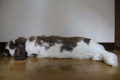 ぶちぶちでっかいロップの白茶くんは推定2003年12月2日生まれ。2014年3月29日永眠10歳3か月17日