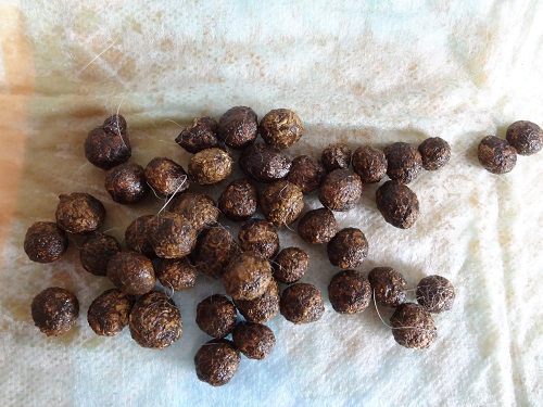 そのくらいなら、少しずつ食べているだろうから、糞と一緒に排出されるはず。