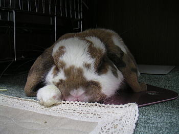 ぶちぶちでっかいロップの白茶くんは推定2003年12月2日生まれ。2014年3月29日永眠10歳3か月17日