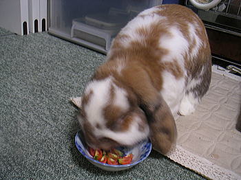 ほらほら白くん、トマトだよ~(´∀`人)