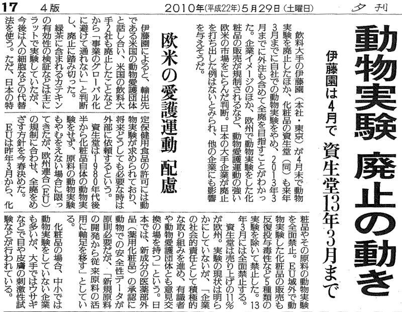 先日、読売新聞に動物実験に関する記事が載っていました。