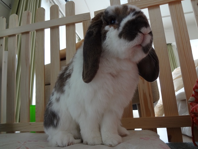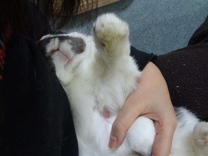カラーはずして、白くん兎生4回目くらいのお風呂場へGO!
