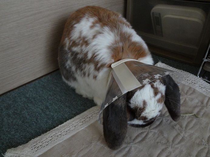 顎ハゲがなかなか治らないのでエリザベスカラーデビューをすることに(・∀・;)